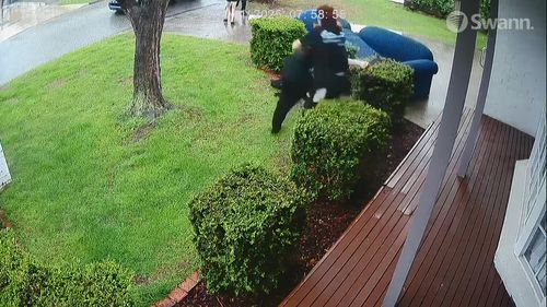 In the video, a suspect appears to draw a knife, trapping the 19-year-old victim on a porch in Pakenham.