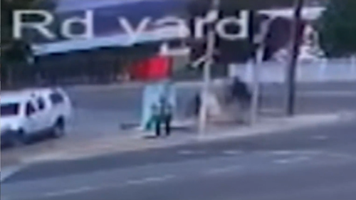 The security video reveals the woman patiently waiting to cross the bustling Marion Road when, around 3:50 p.m., a man emerges from a side street and heads her way.