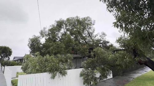 A tree deemed safe by a Melbourne council has come crashing down into a home as a mother and her two children were just metres away. (Nine)
