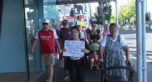 Protesters held up handwritten signs saying “bail laws need to change” and “youth crime do the time”. (Nine)