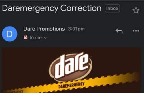 “We are writing to provide an important update regarding a communication you received this morning about being notified as a provisional weekly winner in our promotion,” Dare’s email with the subject line “Daremergency Correction” read.