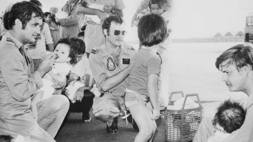Among the pilots was Hugh Howell, who today recalls the perilous flight from Vietnam to Bangkok in Thailand, where the children were transferred to a Qantas plane for the onward journey to Australia.