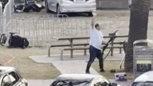The footage, captured from a different perspective across the parking lot, depicts Ahmed seizing the weapon and directing it at the assailant.