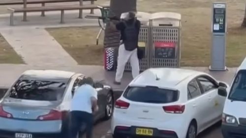 A courageous individual took cover behind a silver car and stealthily approached the suspected gunman. In a swift move, he lunged and secured the gunman in a headlock.