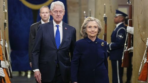 Former President Bill Clinton and former Secretary of State Hillary Clinton arrive before the 60th Presidential Inauguration in the Rotunda of the U.S. Capitol in Washington, Monday, Jan. 20, 2025. (Melina Mara/The Washington Post via AP, Pool) (AP)