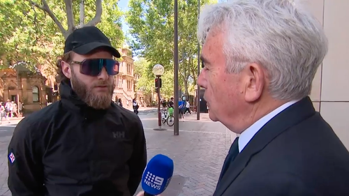 Brandan Koschel was arrested after speaking to the crowd at Moore Park. (Nine)