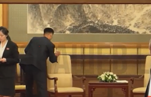 Video has emerged of North Korean staffers meticulously removing all traces of leader Kim Jong-un‘s presence after he met with Russian President Vladimir Putin in Beijing.