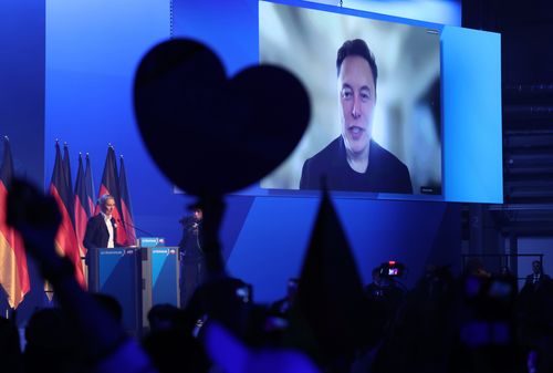 Musk, who spoke to the crowd in a live video, was met with huge cheers by the roughly 4500 AfD supporters gathered inside a hall in the eastern German city of Halle on Saturday.