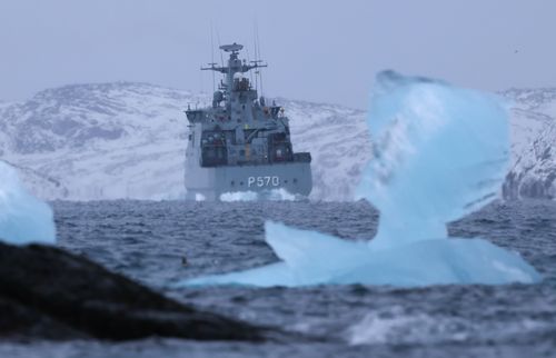 Danish navy patrol ship HDMS Knud Rasmussen off the coast near Nuuk, Greenland. (Getty)