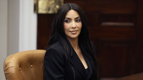 WASHINGTON, DC - APRIL 25: Reality television star and businesswoman Kim Kardashian attends a roundtable discussion on criminal justice reform hosted by Vice President Kamala Harris in the Roosevelt Room at the White House on April 25, 2024 in Washington, DC. The meeting included four of the sixteen people who had been convicted of non-violent drug offenses in the past and received clemency from President Joe Biden earlier this week. (Photo by Chip Somodevilla/Getty Images)