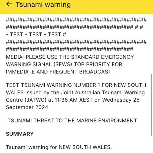 Testing is important for the bureau and partners to plan for real tsunami threats, the bureau added.