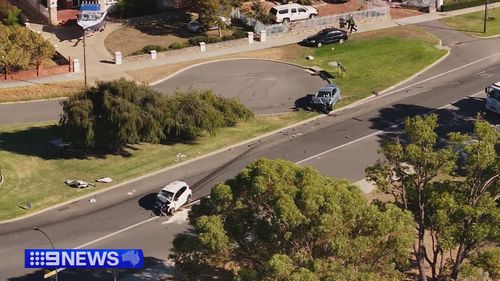 It’s understood the collision occurred when a 45-year-old man lost control of his Jaguar and mounted the curb, crossing onto the wrong side of the road and slamming into a Honda head-first.