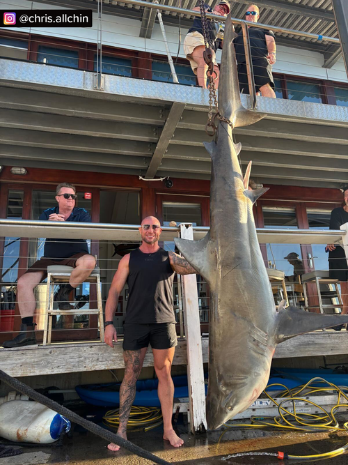 As they fished in waters about 20 meters deep, safely distant from swimming zones, Allchin and his crew successfully snagged a shark and managed to haul it onboard.