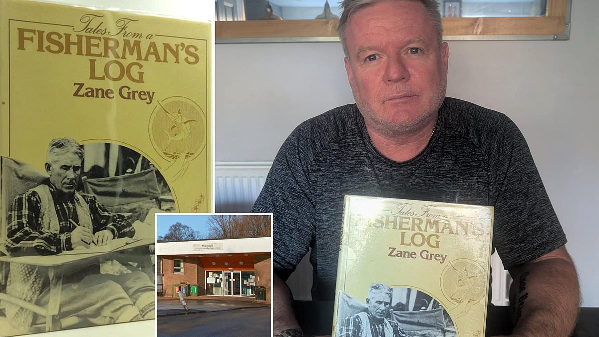 He said: ‘There’s a picture of the author Zane Grey on the front cover and he’s an old man sitting writing his log book.