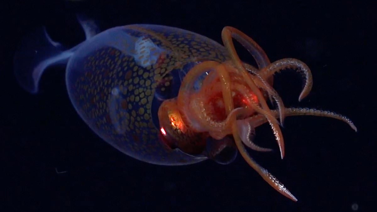 ‘We knew it was a beautiful glass squid so paused on the descent to watch it; why would you not, it’s stunning.’