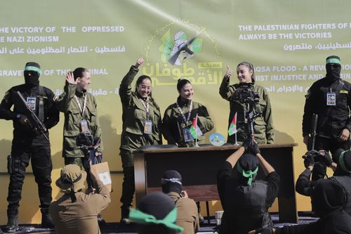 In a televised statement, Israel’s army spokesman Rear Adm. Daniel Hagari confirmed the released hostages were in Israeli hands and on their way home, while criticising what he called the “cynical” public display of the young women by Hamas before their release.