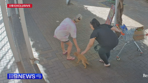 Footage captured the moment the eight-year-old dog came running up to two members of the public at Sefton Plaza just after 9am today.