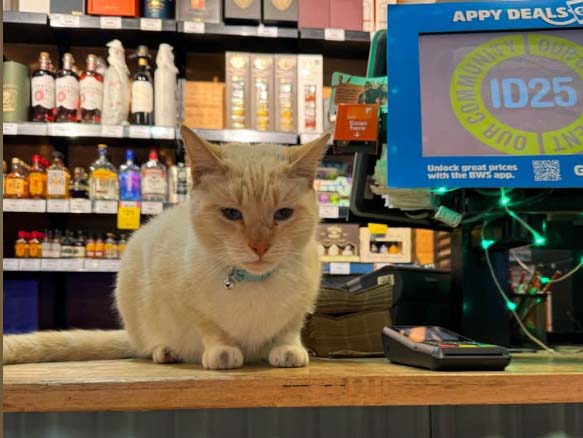 "This cat came into BWS a while ago and hasn't left. Does anyone own it?" reads one Facebook post about him.