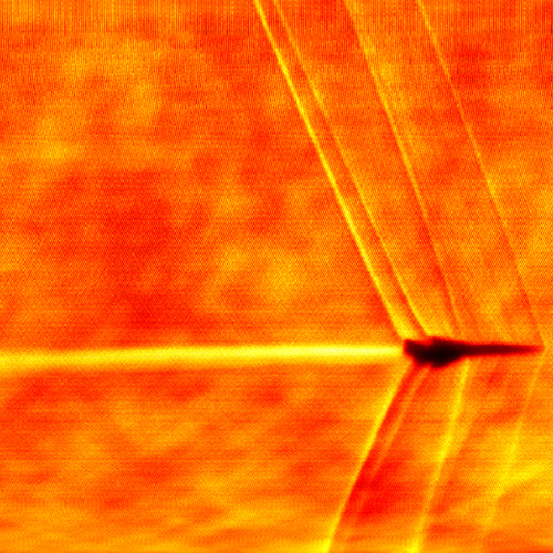 NASA teams on the ground used Schlieren photography to capture the shock waves around Boom Supersonic’s demonstrator aircraft XB-1 as it pushed through the air.