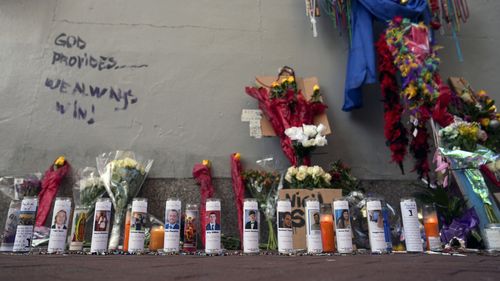 A memorial for the victims of a deadly truck attack on New Year's Day stands on the sidewalk in the French Quarter of New Orleans.