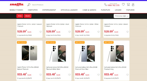 Aussie retailer Snaffle allows customers to buy electronics and household goods including washing machines, fridges and mobile phones through weekly installments over a period of years.