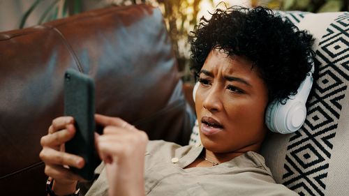 Woman on phone shocked