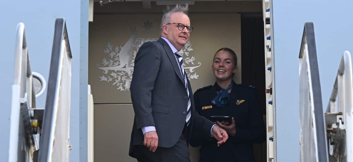 Prime Minister Anthony Albanese’s plane has taken off from Missouri after an unscheduled stopover on the way home from his White House visit to meet with Donald Trump.
