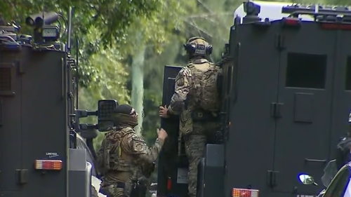 Specialist officers, with assault rifles and heavy armour, and a helicopter are on the scene to search for the man.