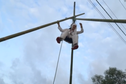 Pro-Palestine activist suspended from giant tripod in Brisbane
