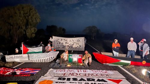 “We’re here because Pine Gap is sharing surveillance data, including geo-location information from mobile phones with the genocidal Israeli regime, who are targeting journalists and their families, children, teachers, doctors, patients and the entire population of Palestine,” protester Jorgen Doyle said.