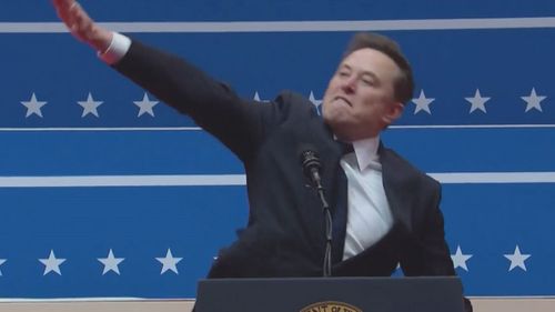 When Musk posted a video of his speech online the clip cut away to shots of the audience at the moment of the gesture.