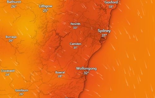 Suburbs in western Sydney will face the hottest temperatures, including Penrith and Campbelltown, while Sydney city will sweat under the mid to high 30s too.