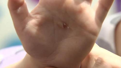 Nikita Wagstaff showed Stuff a blister on her daughter’s hand, from what she was told was a “mix-up” with chemicals on the waterslide.