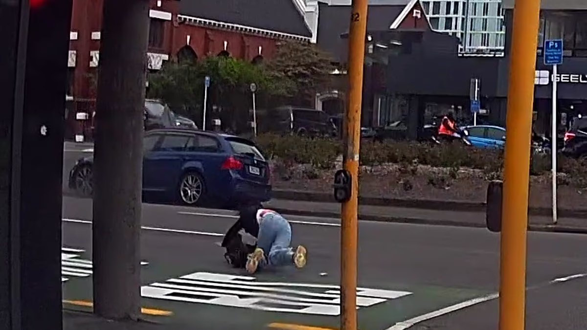 Dashcam footage has shown the terrifying moment the woman was waiting at a traffic light crossing in Wellington when she was thrown by the wind into the road