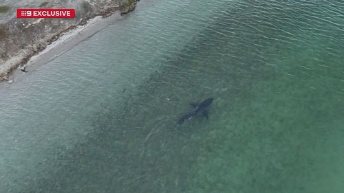 A South Australian fisherman has captured drone footage of a great white shark lurking just metres from a popular South Australian beach. (9News)