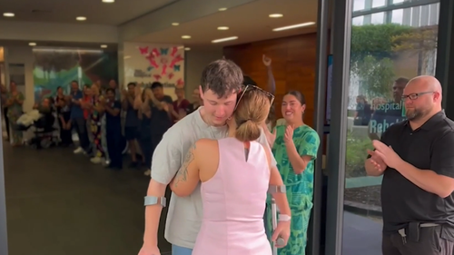 But today, it was an emotional farewell to those who helped him get back on his feet as the 18-year-old left Fiona Stanley Hospital after five months.