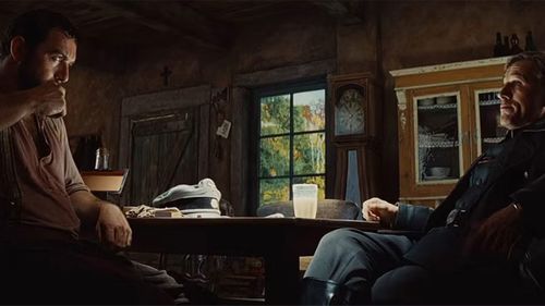 The charming Nazi psychopath tasked with finding Jews doesn’t know there’s a family secretly underneath the floorboards while he drinks a glass of milk.