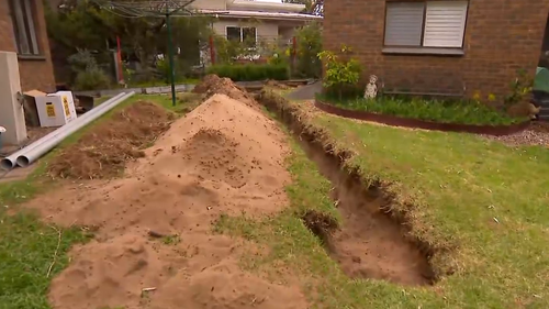The skull and bones were found yesterday in a shallow grave in Greg’s backyard. (Nine)