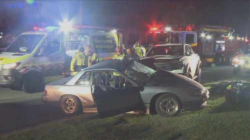 The car fishtailed into a parked ute and neighbours rushed to the scene before paramedics arrived.