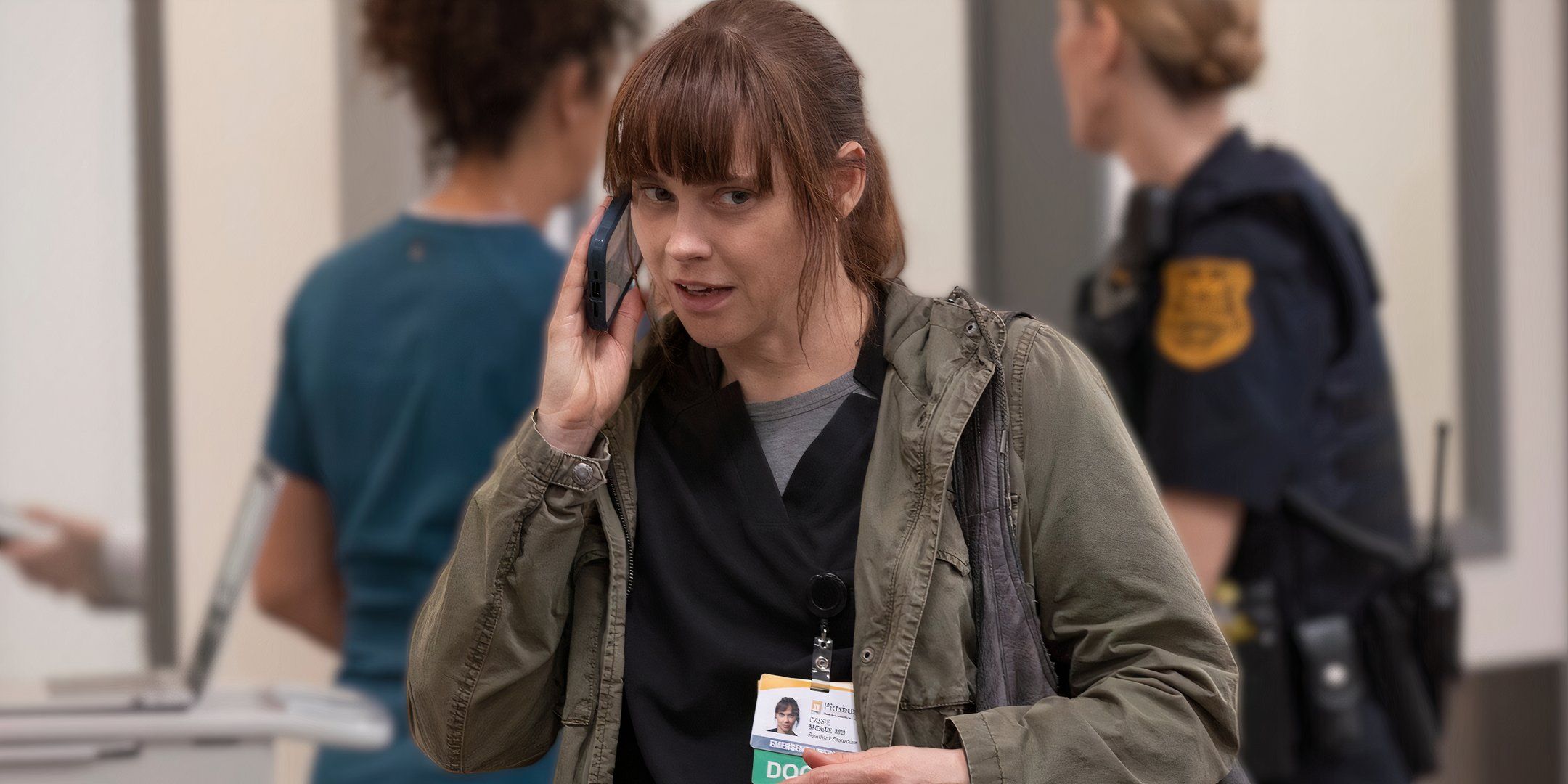 The stress of the ankle monitor comes to a head when Dr. McKay is in the middle of helping patients from the PittFest mass shooting. The monitor begins beeping while she’s trying to concentrate on a patient and, fed up, McKay takes an IO drill (a medical device introduced that same episode) and drills a hole straight into the device, making the sound stop. It causes a bit of a scene on the hospital floor, but she brushes it off and quickly gets back to her work.