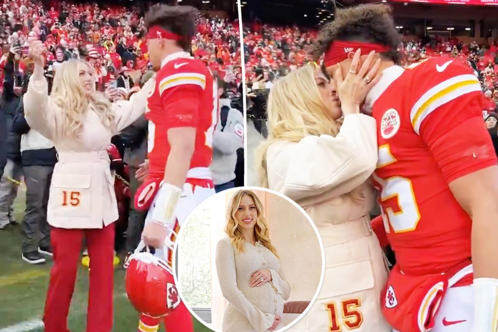 Brittany Mahomes gives husband Patrick a good luck kiss at Chiefs playoffs game less than a week after giving birth