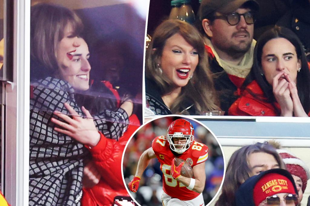 Taylor Swift, Caitlin Clark hug after Travis Kelce scores major touchdown during Chiefs playoffs game