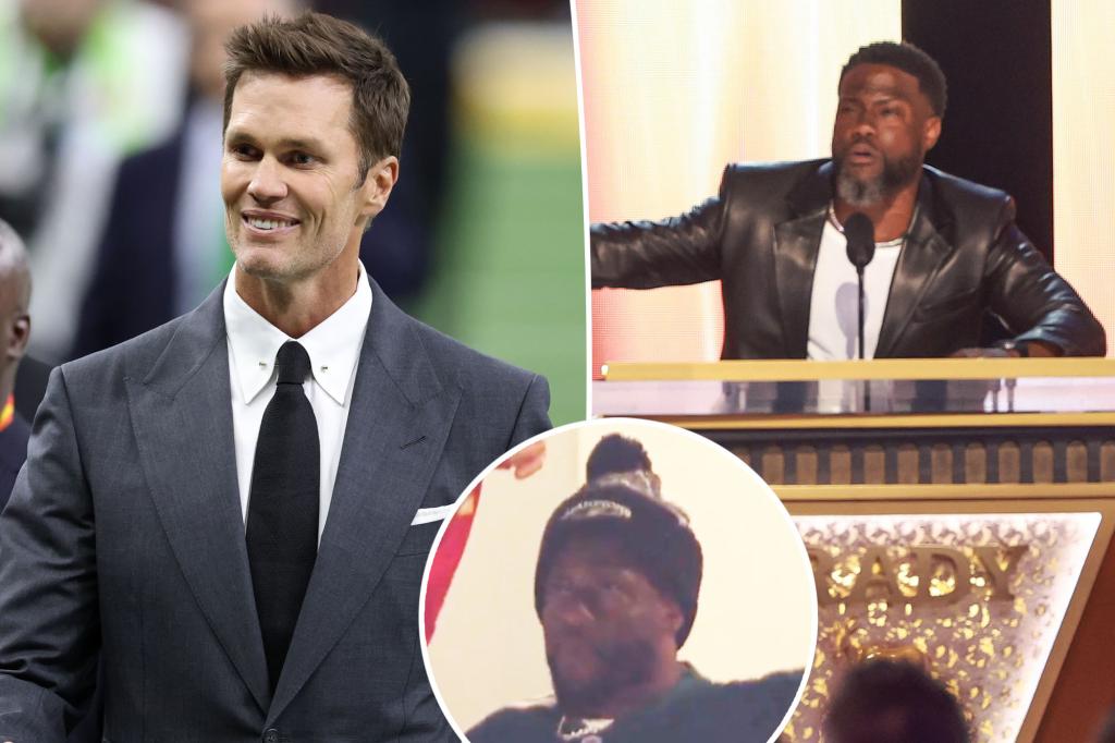“Kevin Hart’s here?” Brady, 47, asked his fellow Fox Sports co-commentator Kevin Burkhardt as the Kansas City Chiefs faced off agains the Philadelphia Eagles.