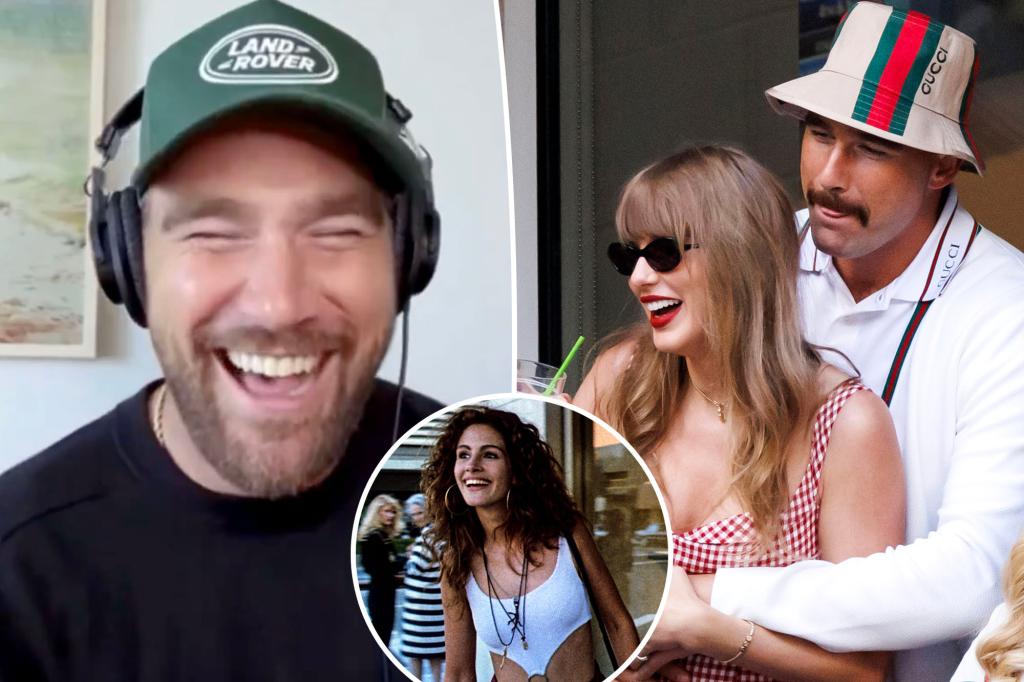 Jason, 37, interrupted to point out, “You’re living ‘Pretty Woman’ right now [dating Taylor Swift]. You are ‘Pretty Man.’ You’re living your own Julia Roberts’ [moment].”