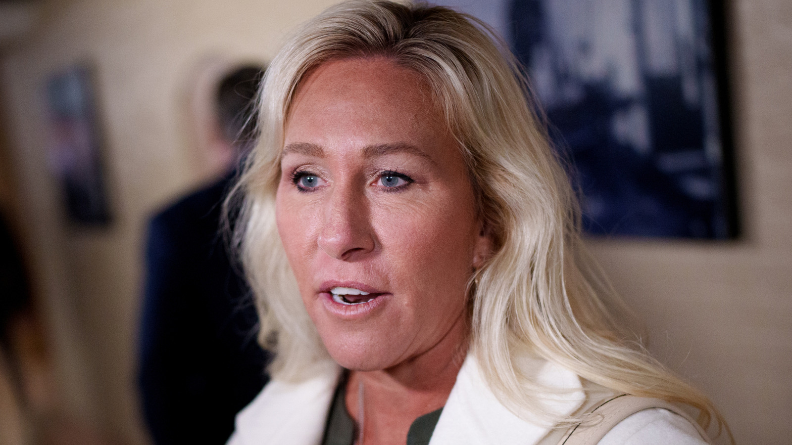 Marjorie Taylor Greene was signing books for fans at a convention in Detroit ahead of Donald Trump speaking there in June 2024. For the occasion, Greene sported a shimmering silver sequin shirt, which was a bold choice, but paled in comparison to the abundance of cover-up she appeared to wear. A relatively candid pic was captured of her with a fan, and the photographer zoomed in, exposing how powdery Green’s cover-up looked. She chose a bright pink lipstick, which only accentuated the pallor created by the beauty product that was also prevalent due to the exaggerated creases around her eyes.