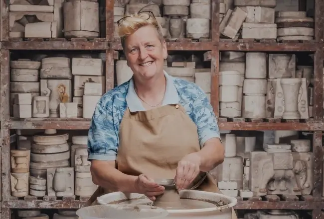 Kaz Woods, 62, is one of the potters on Series 9 of Channel 4’s The Great Pottery Throw Down, hosted by Siobhán McSweeney, alongside judges Keith Brymer Jones and Richard Miller.