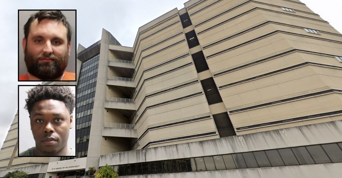 Background: Duval County Jail in Jacksonville, Fla. (Google Maps). Inset (top): Nathan Williams (Jacksonville Sheriff’s Office). Inset (bottom): Jenard Ketter (Jacksonville Sheriff’s Office).