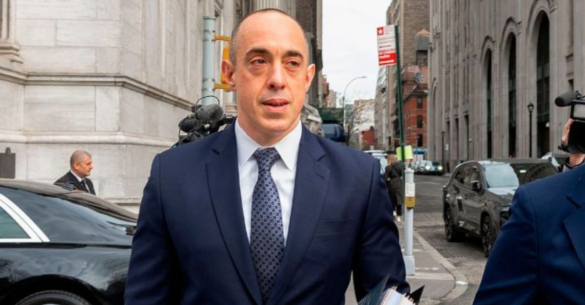 Emil Bove exiting the New York State appellate court, Monday, April 8, 2024, in New York (AP Photo/Peter K. Afriyie).