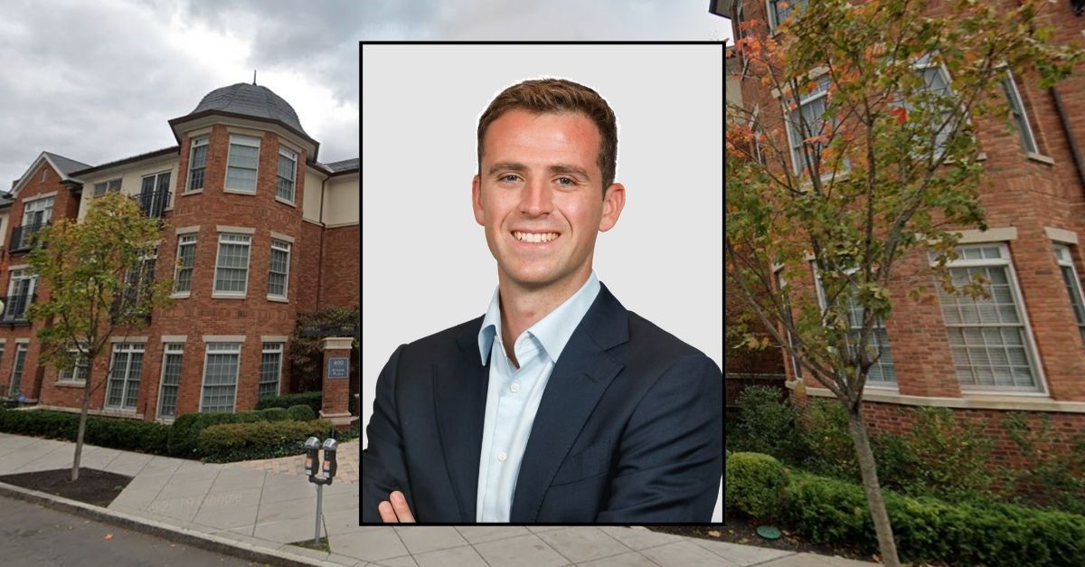 Inset: Joseph Hertgen (Locust Point Capital). Background: The Residences at Palmer Square in downtown Princeton where Joseph Hertgen was found dead (Google Maps).