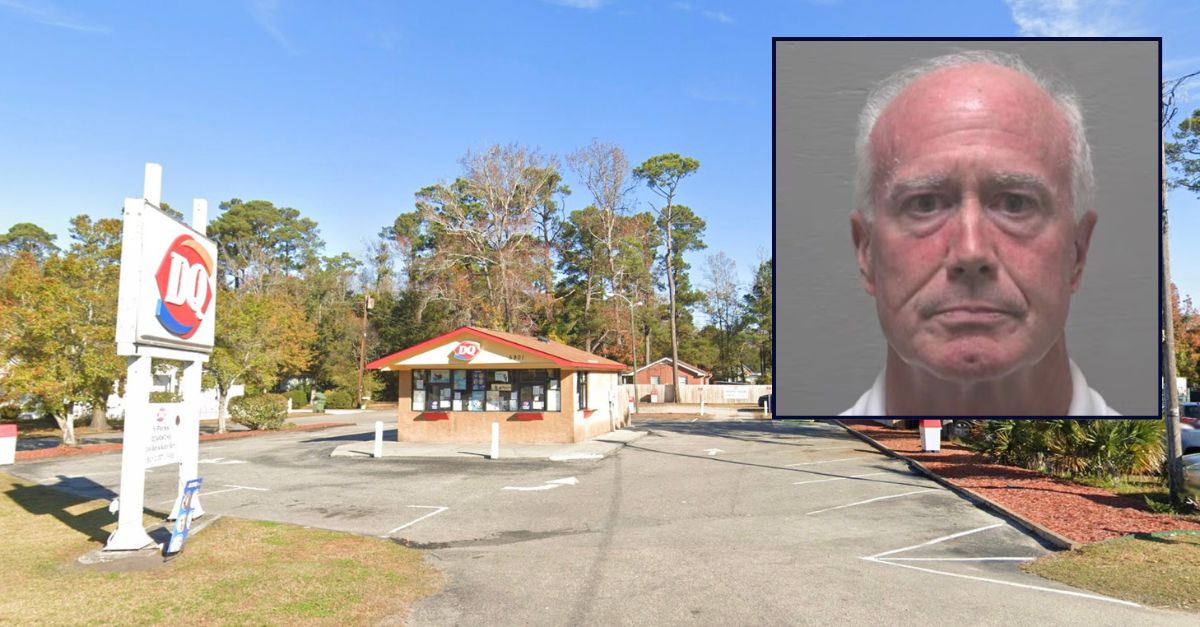 Inset: James Yokeley Jr.(Wilmington Police Department). Background: The Dairy Queen where Yokeley claimed his granddaughters’ ice cream was drugged (Google Maps).
